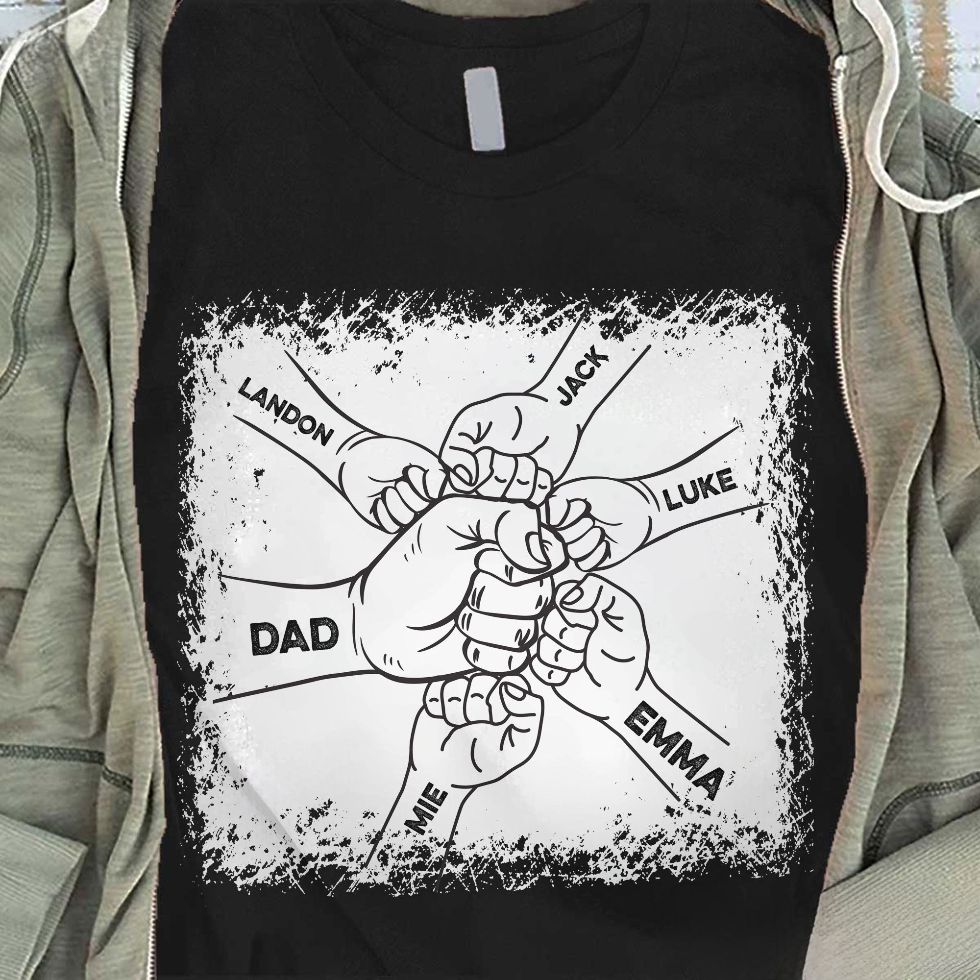 Father’s Day Fist Bump Dad And Kids – Custom Names – PersonalizedOne Size Shirt